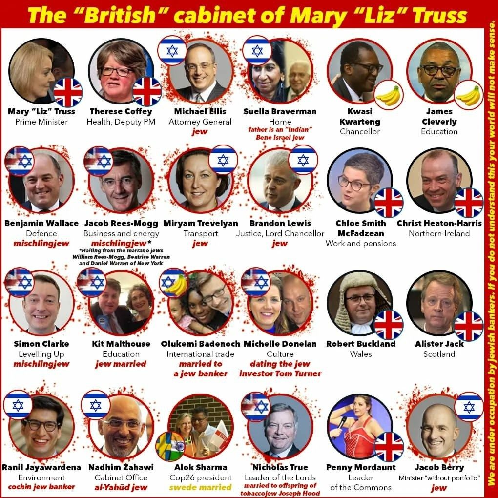 British Cabinet – Jew Masters and Non-Whites Posted byBarbara-Author October 18, 2022October 18, 2022 Note the “Mixed” races and babies also in the 2022 British Cabinet.